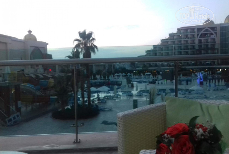 Приехали в 7 утра, заселил нас сразу же. Номер хороший на 6м этаже с видом на аквапарк. (про переселение в другой номер после бури ниже). Повезло - номер крайний и до переселения было тихо, единственные соседи по этажу там попались тоже тихие. Рай, тем более что мы неделю только разве что ночами выползали в лобби и пройтись. Большая двухместная кровать и полуторка. На балконе столик и кресла пластик под ротанг, пепельница. Много каналов ТВ, притом 3 или больше были русские. Минус ТВ, каждый раз при включении проигрывается канал с рекламой Хафиры, очень громко сравнительно с громкостью, на котором смотришь ТВ, неприятно.