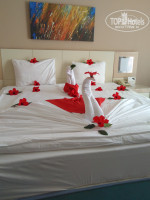 Добрый день! Наконец-то появилось время оставить отзыв. На самом деле, хочу написать только хорошее. В отель мы приехали часов в 11.00, уже в 13.00 нас заселили с видом на море (доплатили 20 долларов). Это шикарно!!! Выходишь на балкон, а перед тобой море, утром восход, круто!! Сам номер - не люкс, конечно,пыль вытирала сама!Но!! -МОРЕ-это то, ради чего мы приехали, поэтому на всякие мелочи внимание не обращали. Вечером громко музыка играет и если вы хотите лечь спать пораньше-купите беруши, я засыпала с ними. территория маленькая, но ухоженная. Персонал очень приветливый. Про еду много писать не буду, здесь достаточно описаний. Кормят нормально, изысков особых нет. Разнообразие хорошее. Фрэши на входе очень вкусные, всего 2 доллара. ММММ... лежишь на пляже....пьешь фрэш..смотришь на прекрасное чистое море...