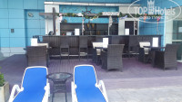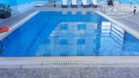 И оч теплый бассейн на крыше с шезлонгами и баром.