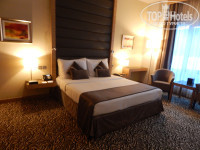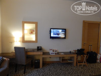 Номер просторный, кровать большая, белье белоснежное, подушки ( 4 шт) плоские и неудобные, письменный стол, тумбочки, полочки, маленький столик с креслами у окна.