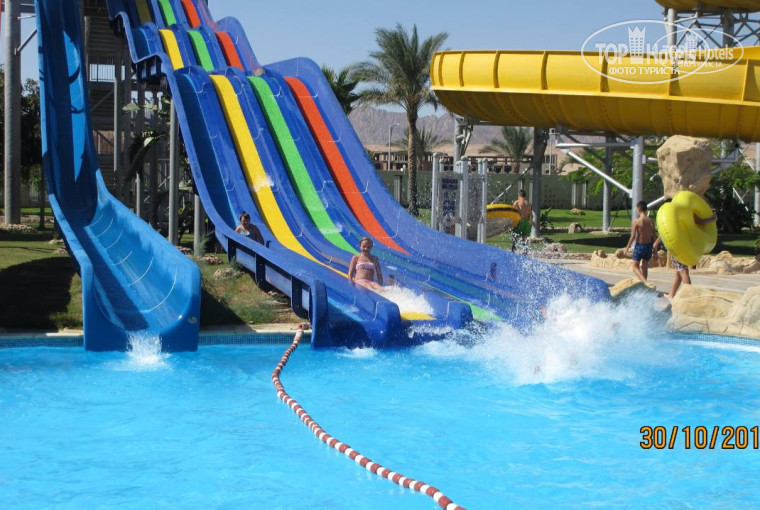 Коротко что понравилось: территория красивая, чистая, не пустынно-есть пальмы, цветочки, кустики,травка, много бассейнов, классный детский аквапарк - это просто мечта для ребенка, хороший аквапарк для более старших, хорошие лежаки и кровати возле бассейнов и на пляже.