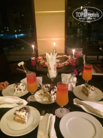 В честь дня рождения в лобби-баре бармены сервировали столик с коктейлями и тортиком. Аниматоры спели "Хэппи бёздей".