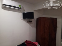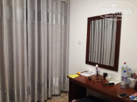 В комнате одна или две кровати,шкаф,тумба у двери,прикроватная тумбочка. тумба под зеркалом. На ней чайный набор. розетки требуют переходников,но у нас они и без них работали))) Так же есть фен,телевизор,кондишен. Сейф принесли по требованию, как и утюг. А вот холодильника нет. Жаль!