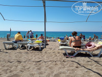 Пляж. Пляж как пляж, немного грязный, но по вине отдыхающих. Мусор убирали регулярно, лежаки всегда были и под навесами и без них. Только непонятна роль металлоконструкций последнего к морю ряда без тентов. Смотрится очень плохо, не поселфиЦа. Вход в море вполне хороший. Все купались и радовались. Я - нет.) Не умею плавать и сидел на берегу и ловил волны и камушки плавками. Море не особо чистое, волны большие. Бар на пляже работает хорошо. Вода всегда есть, пиво, соки, вина и прочее тоже. На кухню при пляже даже не смотрели. Автобус на пляж от отеля ходит не по расписанию, но проблем это не доставляет. Водителю отдельный респект за музыкальное сопровождение и вообще. У нас бы так работали, ездил бы с удовольствием. Полотенца мы ни разу не меняли, ибо русские и лень и не привыкли к такому баловству.)))