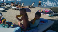 Очень люблю отдыхать в сентябре в Греции, особенно Халкидики. Отдыхаем там по-разному каждый год. То в аппартаментах, то в гостинице, то просто живем у друзей. В этот раз мы поехали большой "итальянской" семьей, и потому решили что нужен отель с бассейном,рестораном, где нас обязательно вкусно накормят, и главное, чтобы любимое Эгейское море было рядом. Скажу сразу с выбором не ошиблись.. Отдыхали в этот раз через Музенидис. Отель был предоставлен этой компанией, и скажу вам что были очень приятно удивлены. Сразу отмечу что в Греции 4* в принципе по-европейски скромны и потому я не ждала супер убранства и какой то роскоши. Отель состоит из 3 зданий, блоков А,В,С.. Мы были в В.. номер, где ожидаешь увидеть кровать и доп.раскладушки оказался достойным. Хорошая 2спальная кровать и 2 раскладных кресла-кровати, очень удобные. К тому же очень порадовала мини кухня в номере. Убирались каждый день. Ванная довольно чистая,кафель без плесени,сантехника хорошая. Очень порадовал вид с балкона,нам достался 3 этаж,на территории отеля растут сосны,такие большие и раскидистые, а их аромат мы чувствовали как только выходили на балкон , поэтому то что нам не достался вид на море нас не очень расстроил. Хочу сказать отдельно про кухню,где мы завтракали и ужинали, хозяева молодцы. Завтрак был на убой, не просто среднеконтинентальный ,а с греческими пирогами с зеленью, фетой, корицей и яблоками, очень радовало то, что для маленьких детей всегда находилось что поесть.. Вечером и рыба и курица и мясо ,причем кролик, баранина,говядина, очень разнообразная кухня, что говорить про зелень которая была всегда свежая, вкуснющие помидорки , оливки..греческие десерты были всегда., ну и конечно сезон фруктов были дыни, арбузы,сливы,груши,уже и не помню что ещё,но всего хватало .... Территория отеля располагала для того,чтобы даже не ходить на пляж если лениво, а лечь на шезлонг и любоваться бирюзой моря. Бассейн за день нагревался и было приятно окунуться в прохладной воде, всегда был чистый без каких то там листиков,тараканчиков и песочка, никакого запаха хлорки.. даже детям разрешила поплавать,когда им хотелось после моря поплескаться ещё. На территории совсем не большая площадка для детей, но им мне кажется и её хватало ) ... отдельно скажу про ходьбу на море. Отель располагается на небольшой возвышенности от моря, идти до него минуты 3, пляж называется White. Лежаки платные 3 или 4 евро, "бесплатно" дают воду, мелочь а приятно.. очень понравились мешки для отдыха на пляже,детки облюбовали и на лежаках отдыхать отказывались.. Хочу сказать спасибо Музенидисам за то, что не надоедали своими гидами и нам другой раз приходилось их вызывать самим,чтобы взять экскурсию. Кстати замечу что с доставкой до отеля в этот раз тоже было всё очень слажено, не развозили по отелям весь день, очень четко распределили туристов по направлениям кому направо кому налево, подъехали дополнительные машины на середине пути (в Калифее) высадили туристов направлявшихся на правое побережье Кассандры, а нас повезли дальше. Лет 5 назад путь до Ханиотии занимал бы часа 2, а сейчас учитывая новую дорогу в Халкидиках и такой приятный трансфер в отель мы приехали уже через 50 минут (100км от аэропорта). Нужно отдельно сказать о том, где располагается отель, когда я его выбирала, мне казалось мы будем рядом с центром, однако могу 