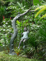 На Orchard Road мы спустились в метро, которое здесь имеет обозначение MRT, купили в автомате 2 разовых проездных билета до ст. "Ботанический сад" (ехать 7 мин., 3 ост., 1,7 S$ = 75 руб. /чел.) и поехали гулять по саду. Вход в него бесплатный, территория большая, зеленая, ухоженная, с прудами, водопадами, скульптурами и скамеечками.
