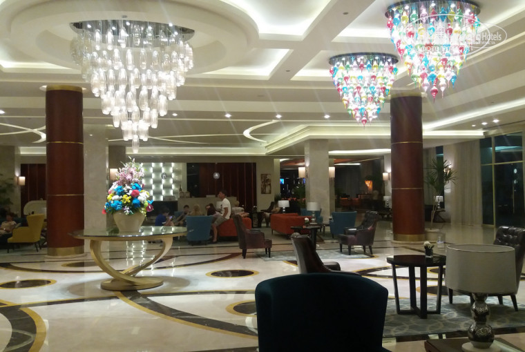 Приехали мы в 8 утра. На нас сразу одели браслеты и отправили на завтрак (не в каждом отеле такое есть), но заселят сказали не раньше 14.00. Вещи были под охраной, мы одели купальники и смело пошли гулять по территории. Она просто огромная!!!! Шикарная!!! Красота неописуемая! Бассейнов штук 10, 2 из них с подогревом. Разная глубина и форма, горки для детей от года наверное)) Везде спасатели, следят за порядком. Чисто, ухожено, травка, цветочки, красота! Шезлонгов достаточно, диваны и бунгало по всюду.