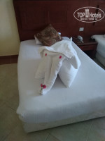 номер был на 3 этаже с хорошим видом на бассейн в удовлетворительном состоянии, ремонт конечно бы не помешал но тем не менее всё работало: кондиционер, холодильник, сейф, все светильники и краны)) уборщик у нас попался очень хороший, убирал каждый день, делал всяческие фигурки из полотенец, полотенец всегда было с избытком, ежедневно пополнял запасы шампуней, туалетной бумаги и воды. мы оставляли чаевые в виде шоколадки или 1$