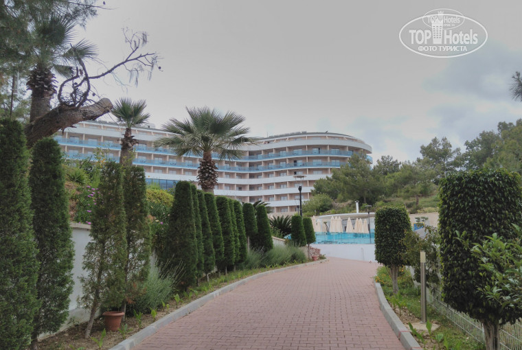 Территория. Что-то есть в территории отеля. Много сосен, красивые виды на море. Аквапарк интересный, можно интересно провести время. Территория самого отеля маленькая, пляжа по сути нет.