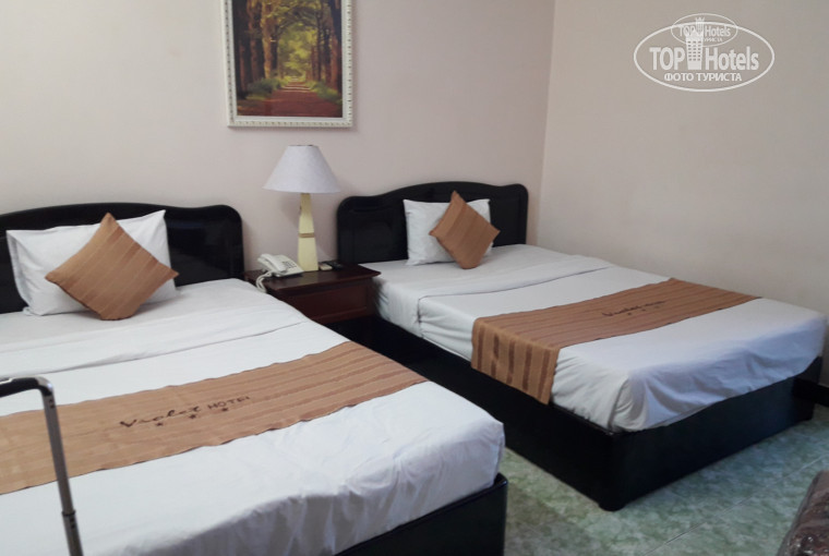 Отдых декабрь 2017, отдыхали вдвоём со знакомой, номер нормальный , сейф в номере, паспорта сдали на ресепшн как депозит , две больших кровати не большая плазма один русский канал, мебель хорошая. Violet Hotel 3* расположен в Европейском квартале, 2-я улица до моря 5 минут ходьбы. Очень много китайцев, питание рассчитано на них. Один минус это завтраки- это 2*. Если ехать то завтраки не брать. Путевка за 16 000 р.вполне всё соответствовало. Очень хороший персонал, девчонки на ресепшн супер, всегда готовы помочь. В номере фен, чайник, уборка ежедневно, вода ежедневно, но очень маленькие бутылки. На нашем этаже китайцев не было, было спокойно. Бассейн не большой но чистый, моют ежедневно и в нём никто не купается так как он не большой, я купалась нормально. На море в декабре большая волна, уезжали на север автобусом (7000dong) билет остановка за углом от отеля, там волна не большая можно купаться, рядом "Сад Камней" , ездили на юг там стоят волнорезы, но спуск в море сразу глубоко.Погода была замечательная днём 26-30С, ночь 24-26С, дождя не было за две недели не разу. Экскурсии брали в Русском Информационном Центре у отельного гида очень дорого, оно того не стоит. Отдельно об отельном гиде, (Coral Trevel -FokusAsia) зовут Александр самолюбивый "..." , с его коронной фразой - "У нас во Вьетнаме" всё везде плохо только у него купите экскурсии. Если будет этот гид то вам не повезло. А в целом все замечательно, везде ездили самостоятельно по карте на автобусе, такси по счётчику. Vinpearl Lend супер, очень понравился билет 800 000dong. брали во вьетнамском агентстве на улице, чтоб в кассу не стоять, на канатку стояли минут 10-15, обратно после шоу фонтанов стояли на канатку 40 минут. Оно того стоит))). Хотя отельный гид сказал, что там всё печально после тайфуна и ехать не стоит- ВРАЛ.