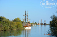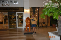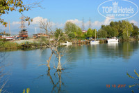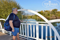Территория. На территории есть большой бассейн, несколько баров, магазины, спа, анимация. В холле всегда было место и можно было смотреть телевизор с российскими каналами недалеко от бара. Рядом с отелем протекает река и находится озеро. По реке плавают корабли с экскурсиями до моря. Нам очень понравилось.