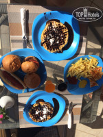 Добавлю фото території , моря , їжі , одного дня краби були, на пляжі в барі роблять вафлі , оладі, бургери, піцу , хот доги