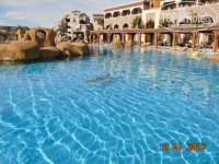 Пишу отзыв год спустя, так как думала, что восторженность отелем пройдет и буду более скептически относиться к своим эмоциям, но ничего подобного не произошло. Отдыхали с мужем по рекомендации турфирмы «Поехали с нами». Прилетели в Хургаду около 9 утра. В отели были в 10. Регистрацию прошли быстро, нам одели браслеты, позавтракали, а вот заселения ждали до 13 часов. Но мы приехали наслаждаться отдыхом, а не инспектировать отель и искать недостатки. Номер был уютным, все исправно работало. Ежедневно проводилась уборка и замена полотенец. Территория отеля очень большая, вся в зелени и цветах. Персонал трудолюбивый, доброжелательный и вежливый. Пляж огромный, песочек чистый, море прозрачное. Так, как можно было пользоваться территорией. инфраструктурой и аквапарком соседнего отеля, то скучать не приходилось. Аниматоры не навязчиво предлагали заниматься аквааэробикой, йогой, танцами, а вечерами развлекали нас подготовленными программами. Молодцы, ребята! Так держать! Отдельное спасибо официантам, которые отлично справлялись со своими обязанностями. Питание разнообразное, в достаточном количестве для тех, кто не боится поправиться: мясо, рыба, свежие и запеченные овощи, фрукты . выпечка и сладости. Бесплатный Wi-Fi на всей территории, в номере и на море (это огромнейший плюс при нашем образе жизни, так как постоянно нужно было быть на связи). Еще хочется отметить чистейшие бассейны с подогревом в зимний период (вода +28). Мечтой было показать этот «кусочек рая на земле» своим детям, родственникам и друзьям. И мечты сбываются. С 20 по 27 января куплен тур в соседний отель SUNRISE Garden Beach Resort & Spa на 8 взрослых и 2 детей (1 и 5 лет). Я очень надеюсь, что после возвращения домой, напишу еще лучший отзыв о проведенном отдыхе и нам захочется опять вернуться к Вам с еще большей компанией.