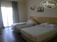 Отель красивый, ухоженная территория, все номера с видом на бассейн, некоторые с боковым видом на море. Все корпуса трехэтажные, на первых этажах есть выход через веранду сразу к бассейну, но не видно моря. На третьих этажах вид красивее, но нужно ходить по лестнице