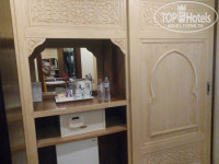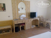 В комнате либо две отдельных, либо одна двуспальная кровать, тумбочка, стол письменный, столик и два кресла, телевизор, кондиционер. В мини баре есть соки, кола, фанта, вода. Вода пополняется ежедневно. На балконе так же стоит столик, два кресла и пепельница. Сушилки нет – все сушили на креслах.
