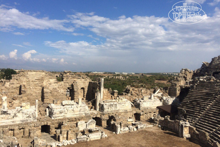 Летели целенаправленно в тройку, поесть да переночевать, планировали лежать на пляже, купаться в море, ездить по экскурсиям. Но отель оказался очень и очень хорошим для тройки. Очень приветливый и отзывчивый персонал, номера малюсенькие но зато с балконами и ничего лишнего.Уборка- это единственный минус. ну и на столах в ресторане грязные скатерти. но это больше зависело от самих приходящих- некотрые и едят как свиноты простите и меры не знают- накладывают тарелки как слону. Питание для тройки годное- всегда всего хватало, из мяса - курица, была рыба, разнообразие салатов овощей и гарниров, очень вкусные супы, зы наше присутствие было две гриль пати - очень вкусное мясо , всегда есть колбаса сыр и остальное. соки там не берите- это юпи))за соками и шоколадом идите в мигрос. анимация отличная, просто великолепная я б сказала. для детей тоже постоянно что- то проводили. в общем скучать не будете точно. интернет очень быстрый, есть массаж сауна- мы не ходили, бар отличный, вкусные коктейли, раки, пиво, вина, наливают "от души" .Отельный гид - тихий ужас... надеюсь ее уволили уже))) хамила , информацию не давала, список выезда наверно пьяная составляла-летали от библиоглобус. зато на ресепшене мальчишки, включая управляющего и все кто в баре работал- это просто памятник им поставить- даже с пьяными немцами и амреиканцами умудрялись не конфликтовать. молодцы. бассейн маленький, никто в нем не плавал, с водной крученой горкой- которая всегда работала по времени, море рядом, пляж мелкий песок, понтон, пологий заход. конец сентября это идеальная погода, тепло, море как молочко парное...ммм))) рынок рядом,полчаса ходу. рекомендую идти пешком- по пути посмотрите все развалины, амфитеатр площадь, откуда за 5 долларов покатаетесь на старой яхте - это изумительно. на рынке всякой мелочи можно купить- чай, приправы, магниты, вещи. возьмите гранатовый соус- это очень крутая штука. раки берите только в дьютифри. Экскурсии все берите на улице- они дешевле раза в 2 чем в отеле. мы покупали на памуккале, только потому что очень далеко и своим ходом это очень сложно. в итоге выехали в 5 утра, приехали в 12 ночи а на самих травертинах побыли всего три часа. очень много лишнего ненужного и неинтересного- думайте сами, ехать нет. остальное все исследовали своим ходом- были в Манавгате , город более оживленный чем Сиде, там красивый водопад с очень дешевым входом, много местных. Из кафе были в двух местах- одно уличное кафе и второе- кальянная. Не скажу что лучше чем у нас- все одинаково. а вообще все время почти по вечерам оставались в отеле- отличный бар, анимация. Ездили с ребенком подростком, поэтому клубы не посещали, но постояльцы говорили что если ехать на такси есть какой то клуб очень веселый и недалеко. Отель рекомендую. Если поеду в Сиде в тройку- вернусь в этот отель.
