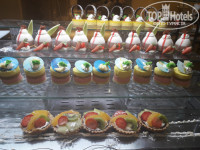 Питание нас устраивало, каждый из членов семьи находил что-то по своему вкусу. Радовали супы в обед, детям нравились крем-супы или на говяжьем бульоне. Нам понравились рыбные. Хочется особо выделить кондитеров: спасибо за очень красивые и изящные десерты. Наша семья не любитель чужой кондитерки (т.к. сама пеку), но тут мы не удержались - как не попробовать такую красоту, а они еще и очень вкусные. Кондитерам респект! Из мяса всегда была курица и говядина, и также рыба. Куча овощей. Из фруктов: апельсины, мандарины, бананы, дыни - все нарезное. Также финики и кумкваты.