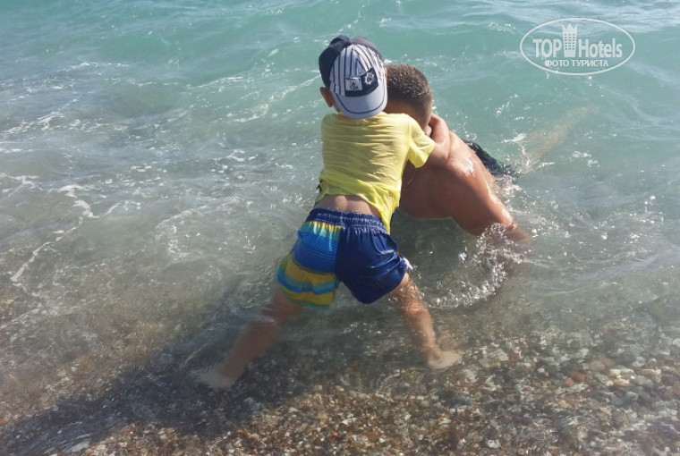 ПЛЯЖ: вообще читая отзывы, довольно часто натыкалась на то, что пишут про мелкую гальку... ну незнаю.... если это называется мелкая галька!!!!!.... по мне так это огромная галька, по которой невозможно ходить.... более того, пришлось покупать спец.обувь, потому что без нее невозможно нормально заходить в море и купаться. Если бы я изначально знала о таком заходе в море, я ни за что в жизни не поехала бы в этот отель.