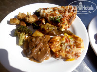 По еде замечаний нет нам всего хватало, каждый вечер на улице барбекю (гриль-меню). Пиво-лайт, вино розовое из бутылок на ужин хорошее. Белое было из паков, но тоже ничего. На фудкорте 4 кухни, но на вкус почти одно и то-же, в самом первом (кажется индийский) сильно острое. Порадовало, что пиво, и все остальное наливают только в большие стекл.стаканы, причем не жалеют)). Рядом с фудкортом спортплощадка для минифутбола и волейбола, там-же бочча, а на сцене можно подучить танцы с аниматорами, в этой зоне «работает» бесплатный вай-фай. Это бред, он никакой, работает если не ошибаюсь с 8 утра до 6 вечера. На второй день мучений купили карточку водафон, это дешевле, чем платный на рецепции.