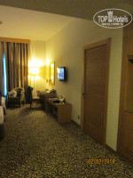 Приехали мы в отель около 12.00, но заселили только в 14.00 (гостей в это время было много, спортивные команды из разных стран). Номер достался на 8 этаже (фактически на 12 или 13, т.к. нижние пару-тройка этажей это парковка, ресторан). Имеется 3 лифта, поэтому долго ждать не приходилось. Номера большие, на полу ковролин, хорошо освещенная ванная комната. В самом номере свет приглушенный, но много светильников. Отметила для себя белоснежное постельное белье, чистое и свежее. При заселении не досчитались одного полотенца, но быстро решили проблему одним звонком на ресепшн. В ванной комнате наборы для личной гигиены, которые каждый день пополнялись. Уборку особо мы не заметили, потому что не мусорили (мусор выносился, воду каждый день по две бутылки докладывали, кофе-сет пополнялся). Очень, кстати, удобно, когда есть небольшой чайник: по -вечерам приятно было побаловать себя горячим чаем с вкусняшками). В шкафу достаточно места, разместили всю одежду, там находится сейф. Единственное неудобство, которое мы заметили, это фен. Находится он не в ванной (а там ему привычнее быть), а в тумбе около зеркала. Причем там же в тумбе, где-то и пристегнут))