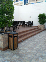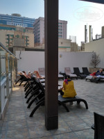 В отеле есть бассейн(слишком хлорированный) и открытая веранда с лежаками.