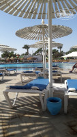 В Хургаду прилетели 20 февраля троем( двое взрослых и ребенок 10 лет).Погода прекрасная, кто не любит жару- 22- 26 градусов тепла.На автобусе привезли в Отель. Разместили быстро, надели браслеты и выдали ключи. Зайдя в номер, поняли, что номер не соответствует даже Отелю с меньшим количеством звезд. В номере неприятный запах, старая мебель, плохо работает слив воды в с/ узле, плесень в душевой... ( номер Стандарт). Номер на следующий день поменяли на Делюкс( огромное спасибо менеджеру на рецепции Кристине - специалист своего дела, любой вопрос помогала решить быстро и качественно.Мы неоднократно обращались к Кристине и всегда получали помощь, внимание и доброжелательность с пожеланиями хорошего отдыха . Таких специалистов бы побольше! Еще раз спасибо! В этом номере все намного лучше: мебель новее, есть телевизор (6 русскоязычных каналов, холодильник, сейф, кондиционер, есть горячая вода). Уборка номера ежедневная( через день меняют белье и протирают пол). На этом все... На второй день гид ( у нас был Абрам) пригласил всех вновь прибывших туристов на встречу, где все четко рассказал, порекомендовал какие экскурсии можно посетить и по какой цене.Мы были на Пиратской яхте- удовольствие невероятное( шикарная яхта, чудесная команда, вкусный обед, плавали в открытом море в ластах и масках, а еще получили море смеха и удовольствия- рекомендуем, никто не пожалеет потраченных денег!!!).Следует отметить команду поваров Отеля. Молодцы!!! Еды хватает- разнообразие сдобы, пирожных, булочек, салатов и горячих блюд. Отдельное спасибо Мухамеду за омлеты на завтрак и Карену за пиццы и сладости! При заезде узнали, что можно раз в неделю посетить 4 ресторана бесплатно. Те кто любят экстрим- могут посетить их. Вспоминая эти посещения ресторанов, мы испытывали только смех( на пляже туристы шутили, кто сколько выдержит), а после все шли в столовую. Смысл в посещении этих ресторанов? Пляж песчаный с хорошим заходом в море, где можно купаться не только взрослым , но и детям. Территорию пляжа постоянно убирают. Рядом есть туалеты. Лежаков хватает. Полотенца выдают по одному на человека на целый день, что очень неудобно, так как приходиться носить их целый день между пляжем , столовой и аквапарком. Территория огромная- море в одной стороне, а аквапарк- на выезде из Отеля. Есть еще два бассейна с холодной водой. Аквапарк с двумя бассейнами( детским и взрослым) с подогревами воды. Детям нравиться, хотя в детском бассейне горки расчитаны на совсем маленьких детей. Взрослые горки- хорошие только пять, а на двух вообще ползком нужно выползать, никакого уклона и скольжения вообще нет, люди застревают в них... Персонал аквапарка приветливый и дружелюбный. Еще есть аниматоры , но программа настолько однообразная и скучная( за десять дней отдыха дети танцевали три танца под одну и ту же музыку). На пляже по утрам зарядка и аквааэробика.Это плюс! Нравиться и взрослым и детям!Территория большая и ухоженная. Поражает разнообразие цветов, кустов, деревьев.Все цветет и благоухает, красиво и радует глаз. Очень чисто и аккуратно, хотя на территории идет ремонт, но по моему он никому не мешает. Ну и Красное море!!! Такой необыкновенной красоты! Поражает разнообразие красок! А рыбок, крабов и всякой разнообразной живности... Приезжайте и сами увидите! Это стоит увидеть хотя бы раз в жизни своими глазами и 