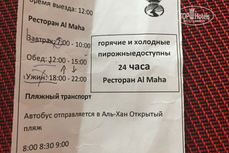 Отдыхали в отеле в марте 2018 года, отель городской, до пляжа трансфер, если в отеле народу не много то с доставкой до пляжа проблем нет, ( у нас так было 4 дня) а если народу много то попасть в автобус это просто гонка на выживание, автобус маленький все не входят , а следущий идёт через 30-40 минут , на такси до пляжа 5 минут езды , стоит 13-15 дирхам, возят на платный пляж, зонтик стоит 20 дирхам, шезлонг то же 20, океан великолепен, песочек золотистый, на пляже есть кафе, там можно недорого покушать относительно самой Шарджи , трансфер на пляж от отеля в 8:00, 8:30, 9:00 обратно с пляжа в 11:00, 11:30, 12:00, если захочется быть на пляже дольше то только на такси обратно, пешком идти около часа,пешеходных дорожек оочень мало, приходится перебегать перед машинами в буквальном смысле))) питание , у нас были завтраки и ужины, но мы все ужины меняли на обед, голодным не уйдёшь, но без изыска, все таки тройка ) в отеле можно попросить плитку и кастрюлю и готовить самим, мы ходили на рыбный рынок (находится не далеко от отеля, минут 20 пешком) покупали свежие креветки и варили, очень вкусно, там же находится овощной рынок, там нужно торговаться, цены там отличаются от прилавка к прилавку)