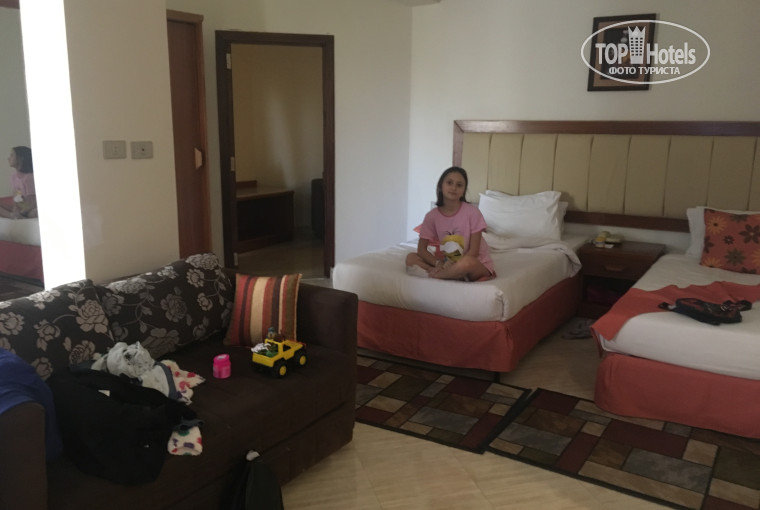 У нас был двухкомнатный номер , оставлю фото, в отзывах...