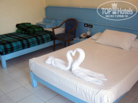 ПРиехели 3 октября поздним вечером, накормили помоями (реально помои, есть не стали). Поселили в номер, который меньше моей ванной, две кровати, сбоку шкаф из одной деревянной дверци и полок , в ногах кроватей стол с теликом (аля, автомобильный вариант), сломанный торшер (другого света в комнате не было) и вид из окна на помойку ( я так понимаю, у них стандартное заселение, что бы потом срубить бабала), на утро сунули 10 баксов нас переселили в номер попросторнее и с сантехникой и душем, но опять таки же жуть страшная, все покрашено(стены, спинки кроватей, столы и т.д)голубой , больничной краской.Далее было еще шокируеще.Шли утром на море (300 м, отель на третьей береговой линии, между Бичем и Емпаиром целый квартал бедноты и разрухи )думали море компенсирует, всю ЭТУ Ж. куда там, грязное море , мертвые коралы, мутная вода и даже дно у берега грязь одна, рыбы есть, но фотографируя их, удручающий пейзаж все портит. В барах все в 100 гр. стаканах, везде очереди на обед на завтрак, куча лающих, бухих поляков, вобщем жуть, мы не притязательные туристы, видали многое, за 20-30 тыров это было бы нормально, но за те деньги, что мы заплатили....было обидно, что мы так лохонулись, к чертям такой олл ин клюзив,это просто полный пансион и не более. Блин, ну хоть бы телек показывал хотя бы 3 канала, а так приходилось тупо лежать на пляже и загорать...Кроме солнца ни че го!!!! Сестра за 40 тыров в ССус съездили, и остались в таком восторге.Люди!! Сюда могут ездить только, те кто слаще сахара в своей жизни ни че не ели, толстозадые колхозницы и толстопузые комбайнеры 90 %, остальные туристы, случайно попавшие по недоразумению.... Мой вердикт "СССровский пансионат 80хх годов . ПЫСЫ: Пожилая пара сидели напротив как то за обедом, говорят ездили год наза и поехали в надежде, что с тех пор произошла реконструкция, модернезеция и прочее, говорят что не изменилось ничего ВООБЩЕ, за исключением персонала и музыки.