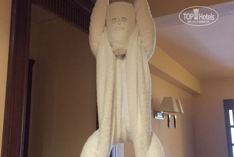 2. Уборка в номере- была каждый день, но не очень качественная, периодически забывали обновлять шампунь,туалетную бумагу, пол мыли только что называется "посерединке комнаты". Хотя порадовали фигурки из полотенец, с юмором сделанные:)