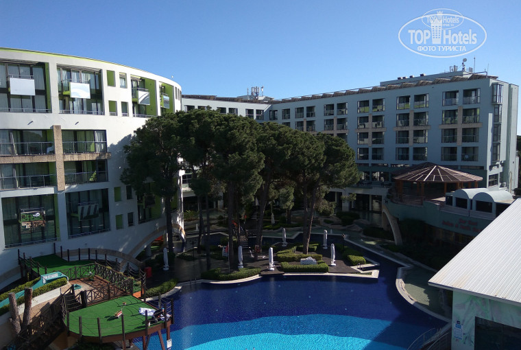 Территория: Она не большая, но ОЧЕНЬ ЗЕЛЕНАЯ. Персонал постоянно что то делал, мазал, чистил - готовятся к летнему сезону. Очень много Бассейнов, есть пару небольших водных горок пару раз их открывали мы даже успели покататься с дочкой.., правда вода прохладная была)))) В основном проводили время на море. Пляж небольшой, летом наверное будет не протолкнуться. Есть огромный пирс его застилают на летний период. Персонал постоянно ходит убирает, подметает в общем ухаживают за пляжем!)