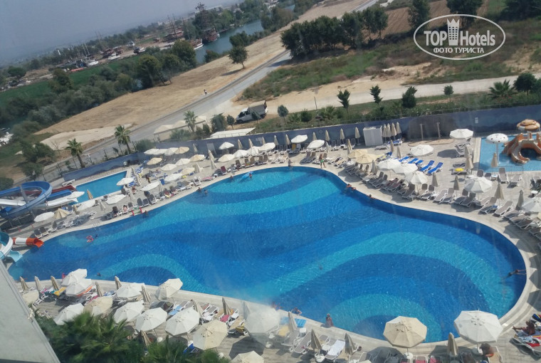 Привет, отдыхали компанией в 5 человек. Приехав в отель нас практически сразу разместили, мы сдали паспорта и ваучеры, а нас самих отправили в ресторан завтракать, т.к по времени завтрак подходил к концу. Придя после ресторана нам выдали ключи от номеров и карточки на полотенца. В отеле 4 корпуса мы жили в 3ем. Выход на бассейн, на болконе столик и 2 кресла. Есть бар, где есть разнообразные напитки. Еда вкусная, не очень большое разнообразие, но думаю в сезон будет подругому. Есть мясо и рыба. Голодными точно не останетесь. На море есть Снек бар, мы даже иногда не ходили на обед, а кушали в нем. Там спокойно можно очень хорошо перекусить. До моря ездили на автобусе. Автобусы ходят каждый час. Выбрались в город Манавгат, там много магазинов где можно купить сувениры и катались из Манавгата на корабле по речке. Ездили также сами по себе в Сиде на автобусе 11 номер, в старый город на развалины. Отель рекомендуем.
