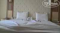 Добрый день. Отдыхала в этом отеле с дочкой 8 лет. Приехали утром, отнесли вещи в багажную комнату, переоделись и спустились к морю. После завтрака, пошли на пляж. Заселение было в обед. В агентстве, при выборе отеля, сразу указали, что нужен номер с видом на море. Корпус E или F, ближе к концу отеля,второй этаж. Вид из номера шикарный. Сам номер обычный, холодильник,плазменный телевизор, каналы на турецком, русском, немецком и украинском языках. Сейф за доп.плату. Полотенца в номере 5 штук, пляжные отдельно в хамаме. Можно менять каждый день, вечером. В ванной комнате гель, жидкое мыло, кондиционер для волос, шампуня не было. Убирались каждый день, вежливый персонал, улыбчивый.
