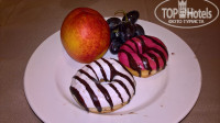 Питание разнообразное, в отеле два ресторана. Первый большой, кде завтракаешь, обедаешь и ужинаешь. Второй, перед пляжем, работает с 10 утра и до 18-00 или 19-00, уже не помню. В баре на полдник пекут вафли, к ним подается шоколадная паста, варенье, измельченный фундук. Мороженое каждый день после обеда.Чай в чайниках, в пакетиках различные травяные чаи. Кофе из автомата. На завтрак разные йогурты, мед в сотах, варенье, фрукты, каша овсяная, молоко горячее и холодное, зелень, сыры, овощи,пекут блинчики.