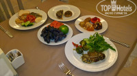Обед и ужин также разнообразны, каждый день:индейка, курица, говядина, рыба. Имеется диетический стол: отварная индейка, овощи. Микроволновка и блендер также имеются. Есть острые блюда. Столы убирают быстро.