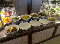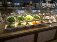 Ресторан: выбор еды большой, в рационе присутствует рыба, мясо, макароны, картошка, сыры, овощи. В целом все хорошо!