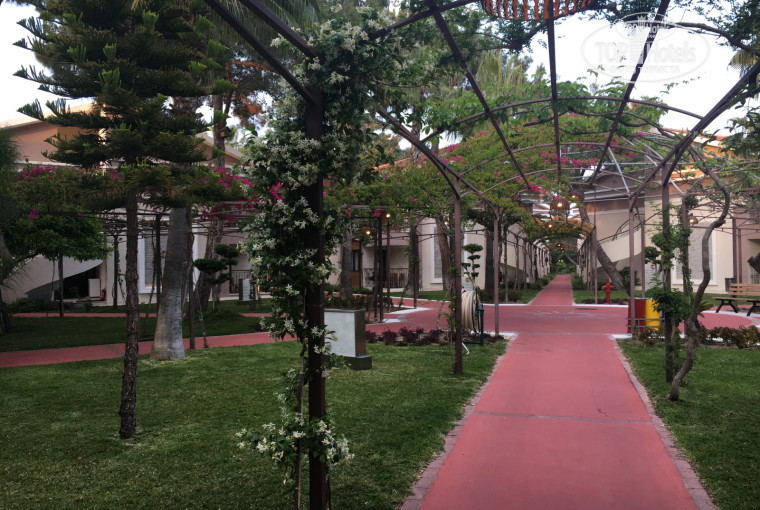 Приехали ближе к вечеру, заселились сразу в номер бунгало на первом этаже.На ресепшн подошла девушка из guest relation, разговаривающая по -русски, проводила до номера, рассказала про отель. Номер чистый, правда довольно тёмный и в первые день пахло сыростью. В номере ждал комплимент от отеля-корзина фруктов и бутылка вина. Территория отеля большая, очень зелёная, цветущие деревья. Много разной живности-ящерицы, кролики,черепашки,ёжики, бегающие по территории, что приводило детишек в восторг. Отдельный зоопарк, где лошади, пони, птицы, овечки, морские свинки.Хороший аквапарк, как детский, так и взрослый. Бассейны на улице не подогреваются, вода в первые дни была 21 градус, перед отъездом уже 23 градуса. Купались и сами и дети.Прекрасная работа аниматоров-ребята весёлые, общительные. 2 часа в день работает луна-парк. Аттракционы были интересны, как младшему(2 года), так и старшему (5 лет). Все вместе катались на колесе обозрения:) для детей, конечно, это идеальный отель. Развлечения на любой вкус-много игровых площадок, детский клуб, мини диско, мини кинотеатр с мультиками). Питание разнообразное, всегда есть рыба, мясо, курица в разных вариациях. Есть диетический стол-варёная курица, овощи, рис. Вечерней анимации практически не было, один раз была "угадай мелодия", один раз выступали монгольские акробаты со своей шоу-программой .заход в море не очень удобный: песчано-галечный. Лучше иметь специальную обувь. Пляж песчаный, чистый. Нам было очень комфортно, что мало отдыхающих.В сезон отель, наверное, похож на большой муравейник:) с удовольствием приедем в него ещё раз