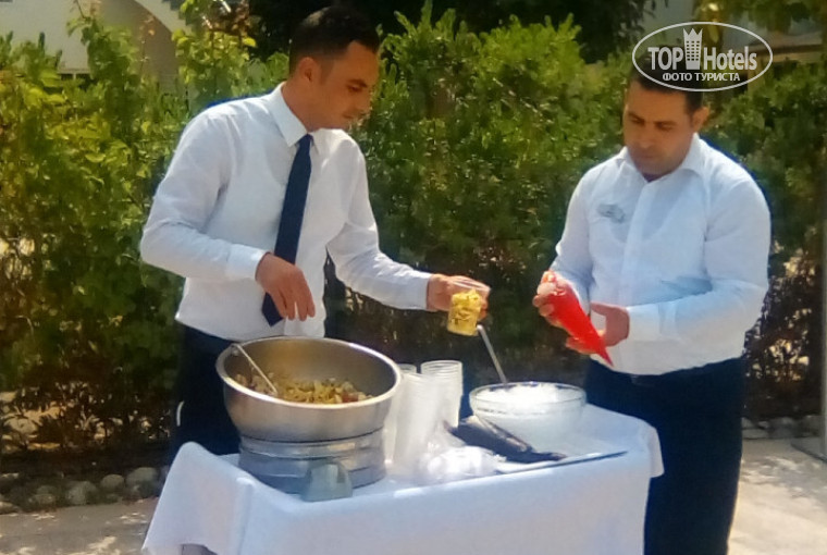 Отдыхали мы с друзьями .С первых шагов попали в теплую гостеприимную атмосферу. Номер дали хороший, все исправно работает, уборка каждый день, в номере чистота. В ванной мыло,шампуни,кондиционеры,крема. С собой можно ничего не брать, качество хорошее. В холодильнике соки, вода простая и минеральная. Пополняют ежедневно.Обслуживающий персонал очень доброжелательный. Особенно хотелось бы отметить Джимми, Марио, все просто супер. Прекрасный водитель автобуса на пляж. Очень внимательный и услужливый.Не плохой профессиональный фотограф . Не знаю кто там мяса не видел, наверно плохо искали. Рыба всякая каждый день. Мясо то говядина, то баранина. Курица каждый день. Остальное мне не перечислить. много, много всякой всячины. за 10 дней мы все не попробовали, не успели. Поездки на море совсем не напрегают. Все по расписанию.Полотенца пляжные меняют каждый день. С пляжа можно не уходить. Накормят и напоят. Аниматоры работают с утра до вечера как взрослые так и детские. Я считаю об отеле плохо пишут либо избалованные либо обиженные. Отдых удался. Спасибо организаторам и работникам отеля. Единственный недостаток, пляж.