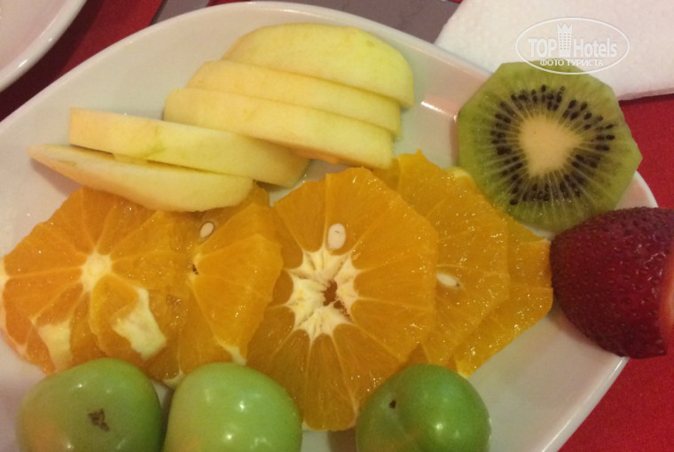 Питание: Этот пункт заслуживает отдельного внимания - ибо кормят здесь просто шикарно! Фрукты: яблоки, груши, киви, бананы, в первые дни - была и клубника. Огромный выбор десертов - сладкоежки точно наберут лишние килограммы) Каждый день давали рыбу: форель, дорадо, скумбрия, осетровые рыбы, из мяса - в основном только курица, но была и утка, а также - вкуснейшая баранина. Овощи и зелень - в изобилии. На пляже есть бар с водичкой и фруктами, также там сидит турчанка и выпекает прекрасные лепешки с сыром и картошкой - советую! На территории отеля есть кафетерий со сладостями и мороженым.