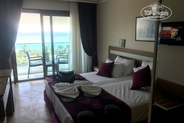 Сразу скажу сравнивать есть с чем, отдыхал в Турции от трех звезд до пяти. По Порядку, в большинстве случаев, отели и перелет покупаю самостоятельно без агентств. Прилет был в Аланию, трансфер до отеля групповой 6$, ехать минут 15, достаточно не долго. По приезду заселение прошло быстро, как и заявлено в брони номер с видом на море и большой кроватью, на ресепшене приветливый персонал часть из них говорит на русском. В апреле в принципе только еще начало сезона уповать на территорию отеля что будет все ярко не стоило. Питание как и в большинстве отелей Турции это: зелень, фрукты, мясное и сладости. В данном отеле фруктов вот конечно не было совсем, хотя уже сезон и на рынке всего есть в изобилии. Поэтому питание оценил на 4! Отель сам по себе достаточно чистый, уборка проходит каждый день, номера не убитые. Пляж расположен через дорогу по подземному переходу, напряга дойти нет, буквально метров 200 от бассейна. Пляж мелкая галька, хотите песок то вам на "клеопатру". Напитки на баре в холе и на пляже конечно если у вас все включено. Приветливый персонал. Анимацию оценить трудно, т.к. я был в отеле загруженном на 10% думаю)) сами понимаете АПРЕЛЬ, ехал чтоб искупаться и позагорать. До Алании ходит автобус прямо от отеля, стоит 3 лиры, ехать минут 25-30, конечная остановка у БАЗАРА, там можно купить шмотки и сувениры дешевле чем в районе отеля. В целом не плохой отель если едете за разумные деньги.