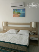 Вернулись из отеля . Впечатления неоднозначные... Сам отель красивый номера хорошие все новое -- НО в номере бежала вода на пол из под раковины устранить никто не пытался.... Так до выезда и нюхали запах не понять чего. Дверь в ванную всегда закрывали из за этого. На ресепшен обращались несколько раз но результат ноль!!!!! Полотенца пляжные есть!!!! В номерах убирают каждый день. Полотенца меняют часто ..в блоке номер 1 всегда не работал лифт!!!!! Мы жили в блоке номер 2 лифт не подводил.Не берите номера на 4 этаже т к в ванной нет форточки. За вид на море можете на ресепшен не платить т к море видно частично из за стоящих рядом домов. Анимация на 3-. Скучно, невесело и все придумывают на ходу. С детками рисует девочка с Белоруссии в определенные часы. Управляющий отелем каждый день проверяет все в отеле т к отзывы не очень ,но пока медленно ,медленно что то начинает меняться. За 9 дней рыба и мясо были 2 раза. В основном наггетсы и котлетки не понять из чего.... Из фруктов постоянно мушмула яблоки 2 вида , апельсины, груши и 2 раза мелкая клубника. Черешни нет! Мы брали на базаре в Махмутларе клубнику и черешню. Там же вещи, сладости и обувь. Салатов стоит видов 15 но они все из несьеденного на завтрак. Яйца вареные залиты сметаной, мелкие пельмешки без начинки тоже залиты соусом. Котлетки нарезанные с зеленью в виде салата, капуста со свеклой и т д. Мы ели салат из вареной курочки с зеленью но он быстро исчезал с тарелок. Зелень вечно непонятного вида ,плохо мытая вобщем я как любитель зелени недовольна. На гарниры первые дни картошки не было,- был рис, широкая лапша чечевица. Потом появилась картошка фри и по деревенски. Ее разбирали быстрее всего. Супы -пюре неплохие. Каши утром нет!!!! Только творог сухие завтраки с молоком. Так что если дети едят каши то их пока нет!!!! Торты были дня 3 ,а в основном пирожные из манки и молочные и подобие пахлавы. Начали перед отъездом давать утром халву!!! Аниматоры пытаются по утрам делать с людьми зарядку , играть в водное поло - это вам дают мяч аниматоры и уходят а вы играйте и считайте все сами! Такое видим впервые. Играют в дартс и на пляже в волейбол. Бочи ( игра) нет!!! Вечером караоке и непонятные игры для взрослых придумываются на ходу!!! Чтобы спеть караоке ищут в интернете песню-- и потом петь вы можете!! Обычно есть репертуар выбираешь и поешь.. вобщем вечером скучно. Спасало то что ездим в этот район Турции часто знаем местность и любим поселок Махмутларе. Ездим туда по вечерам то на базар ( он во вторник и субботу) и просто гуляем по главной улице ходим по магазинчикам . Любуемся фантанами и ночным городком. Из отеля туристы в маркете покупали мясо, ми жарили его на мангалах которые рядом с отелем на зонах отдыха. Вечером ходили до реки ( она рядом) и вдоль нее мангальные зоны местные отдыхают и тут же тренажёры ,качели ,кафе. Классно!!! Море это отдельная тема. На сайте заявлен отель как первая береговая линия, но это ложь!!!! Примерно от отеля 200 метров до дороги. Потом переходишь подземный переход и идёшь вдоль отелей до поворота на пляж примерно 1 км. По времени 15 минут не торопясь. Трансфер ( миниавтобус) возит на пляж с 10 утра до 17 вечера. По времени 3-5 минут. Он постоянно полный т к людей много а автобус маленький. Многие не ждут идут пешком. Пляж засыпали мелкой просеянной отсевом(где лежаки) вход с нашего пляжа в море скользкие плиты и 