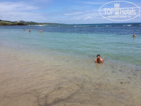 Пляж: оборудованный, шезлонги, матрасы - бесплатно, волнорезы вдалеке, поэтому не было сильных волн, про песчаный хороший вход и не говорю)