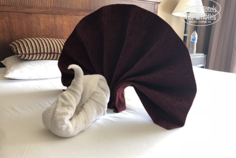 Выбрали отель Jaz Mirabel Beach с сети Jaz Сolection и не пожалели!) Отдыхали мы с 08.05 по 16.05. Отель действительно заслуживает 5 звёзд. Начнем с заселения. Вылет с Киева у нас был ранний (в 4 утра) и соответственно в отель мы приехали рано, в 10 утра. Сразу при выходе с автобуса нас встретил приветливый персонал и забрал багаж. Пока мы сидели в холле, официант принес нам охлаждающие мятные полотенца и коктейли. На рецепшине нам дали анкету для заполнения, время ожидания до заселения не превысило 30 минут. Хоть и заселение с 14:00 дня.После надевания браслетов и выдачи карточек, нас с нашим багажем отвезли на мини машинке прям под наш корпус. Помогли доставить багаж в номер и поставить код на сейф. Заселелили нас в номер класа Deluxe Superior Rooms вместо положеного Standart. Номер чистый, просторный, с хорошим ремонтом, не потрепаный. Уборка в номере производилась каждый день и качественно. Один раз делали лебедя. Воду и ванные принадлежности обновляли тоже каждый день. Есть украинские каналы по телевиденью, что не может не радовать)) Персонал предлагает стирку, гляжку и химчиску одежды за доп. плату.