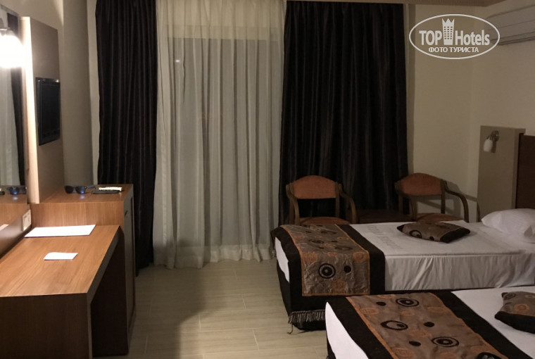Отель хороший, цена - качество! Отель достойный! Покупая тур( после отзывов 2015 года) рассчитывали на другое. Понравилась цена- рискнули!)))Всё что написано в отзывах 2018 года - правда! в мае - Бар на пляже уже работает, амфитеатр есть (сидеть там жутко не удобно, комфортные первые два ряда) Территории у отеля - нет: здание перед ним бассейн,затем переход- и море. Отель полностью готов к принятию гостей( после 2-3х летнего перерыва) Всё чисто, все стараются, всё моют, персонал опрятный. Номера новые, чистые, пастельное бельё, полотенца - идеально белоснежные! Пляжные полотенца- каждый день выдают новые, чистые, выглаженные! уборка каждый день. Сантехника немного подтекает, но это не мешает отдыху! Отель , не знаю до кого года (на фото, которые выложены ранее 2014 года - это есть) был маленьким, затем его расширили, там где лифты панорамные , бар - это всё новое! Наш номер находился в новом крыле. Посредине отеля есть номера, они в центре, у них нет выхода на свет! они внутри здания, это как раз эти номера раньше были окончанием старого здания (пока не знаешь что отель расширяли, не понимаешь зачем номера внутри строения). Туалет напротив Ресепшен - это старая постройка. Есть конечно и минусы, но больше плюсов! Удивило, что в коктейли, воду, любое спиртное - не пихают лёд!!!