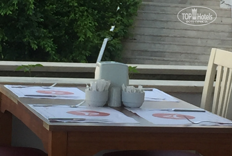 3. Питание. Разнообразием не балуют, но всё очень вкусное и свежее. Для приезжающих, отъезжающих ночными рейсами и просто любителей ночью перекусить - открыт ресторан (супчик и выпечка). Безумно вкусный томатный сок, айран в одноразовых запечатанных стаканчиках, как и бутилированная питьевая вода - в холодильниках в баре, ресторане, возле 4 корпуса и на пляже. Бери сколько пожелаешь! Возле 4 корпуса и в баре на пляже турчанки пекут лепёшки (творог с зеленью, картофель, сыр и сахар с корицей). Также в баре на пляже - фасфуд и очень вкусное мороженное. Очень интересно читать отзывы, в которых писарчуки утверждают, что не возможно найти вилку в ресторане)))))) А зачем её искать?))) Все столы заранее засервированы - вилки, ножи, салфетки, соль, перец, сахар. На ужин на каждый стол ставят бутылку воды и вина, как комплимент. Вино не пью, но приятно)))