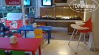 Специально в ресторане оборудована детская зона с едой и телевизором,транслирующим мультики.