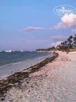 4. Пляж. Пляж стал самым сильным разочарованием. Я летела ради моря, а оно подвело. В первую половину отпуска были страшные наплывы водорослей, фото прилагаю. Кто-то конечно купался, но лично нам было противно заходить в эту грязную противную воду. Гид сказала, что их наплывы не угадаешь. К концу отпуска они перестали появляться в таком количестве, фото прилагаю. Единственное, что хочу отметить, что голубой водички там нет даже при отсутствии водорослей, она зеленоватая (мало ли кто-то такой же наивный как я ждет голубой водички и белого песочка), голубая вода была в Байяибе, в порту, откуда мы отправлялись на Саону, там уже Карибское море. Саона кстати великолепна, рекомендую к посещению. А да, когда водоросли были на пляже, по всей территории отеля воняет этим смрадом)) балкон лучше не открывать.