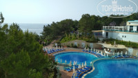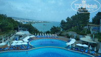 Территория красивая. Вид шикарный на море и другие отели вдоль берега. Минус это большой перепад высоты, когда идешь на море по дороге или в аквапарк. Если для моря есть лифт, но в аквапарк мы стали ходить так: через лобби выходишь с центрального входа, налево ко входу в аквапарк для гостей :) так и быстрее и дорога ровнее.