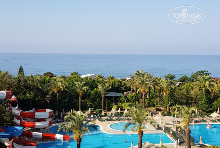 В Турции отдыхали впервые.До этого дважды были в Египте,7 лет назад.Часто слышала,что в Турции сервис намного лучше,чем в Египте, по нашему отелю я не заметила.Если не обращать внимание на мелочи,то отдых будет в радость.Но так-как отель все-таки позиционирует себя как 5,хотелось бы соответствия. Как по мне,то я бы не дала выше 4,те с кем мы общались, кто часто отдыхает в Турции говорили,что максимум 3.Совершенно не понравилась уборка номеров,постель за 10 дней поменяли 1 раз,пыль с середины комнаты разметают по углам и там она и лежит,полотенца меняют только когда их скинешь на пол(кстати о них,на 3х взрослых и 1 ребенка нам дали 3 банных и 3 маленьких полотенца,то которое на полу на 3й день убрали и другое не дали,пришлось одно маленькое на пол класть).Первые 3 дня оставляли чаевые, но потом перестали,не за что было.Питание "рай для вегетарианцев ",очень много фруктов, овощей,листовых салатов,но нам было нормально,мы и мясо находили,правда иногда не понимали ,что за мясо едим)Сами отдыхающие беда для столовой,за 15 минут у дверей стоит толпа,которая сразу по открытию,сметая друг друга несется за едой, стыдно.мы ходили кушать через 50-60 минут после начала,было спокойнее.Набирая целую кучу еды,большая часть потом остается не тронутой. Мы всегда брали понемногу,если что-то нравилось, шли и брали еще,с этим проблем нет,подносы постоянно меняются,если что-то закончилось.Срач на пляже создают тоже туристы, оставляют стаканы,окурки (Хотя стоят специальные горшки для них),туда же тащат стеклянные стаканы и тарелки, Хотя это запрещено.Из 2х душей на пляже хорошо работает только один,тот что по правую руку от входа. Вход море ужасный,огромные камни в воде,которые не видно,можно запросто поломать об них пальцы, но мы нашли место где вход хороший,опять же ближе к правой стороне(лицом к морю),после флага Турции.Номер у нас был 5315,с видом на море,5й этаж, вид прекрасны, единственный отрицатеоьный момент,днем музыка орет у нашего отеля,у кого дети,тот поймет,а ночью музыка грохочет от среднего отеля,спать тяжело.За номер отдали 30 долларов,так как бронировали вид на сад,так было дешевле.Вобщем критических минусов мы для себя не обнаружили,а на мелочи старались не обращать внимание,отдохнули замечательно.Настраивайте себя на лучшее и все будет хорошо. Чуть не забыла добавить,лежаки у бассейна ходили занимали максимум в пол восьмого утра,потом мест не найти. Дважды у нас крали по одному полотенцу,это очень неприятный момент.