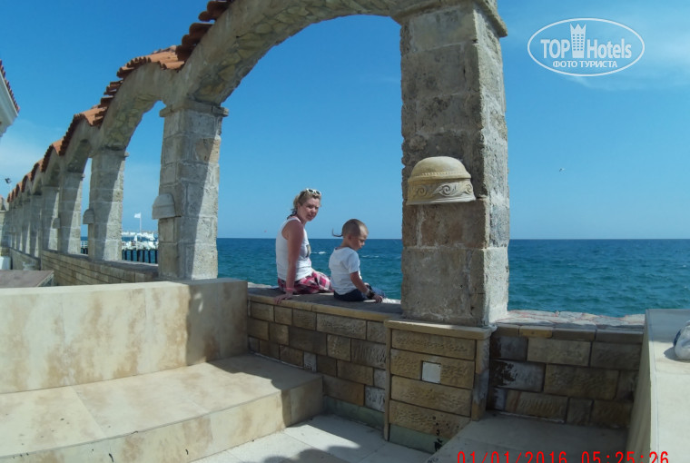 теплее. Детский пляж - мечта, глубина до 80 см, песок идеальный, есть зонтики, рядом бассейн с морской водой - все тусовки там(там и вялились), глубина от 1 м до 140, тут же 3 горки небольшие. Есть лягушатник 40 см и бассейн центральный 1.40 см глубина. Рядом ресторан и мороженое с 14.30-15.30(бывают очереди), тут же детская веранда с горками и качелями. Кормят везде и наливают только местное. Еда можно сказать однообразная. Порадовало то, что кормили даже пельменями. Баранина, мидии, рыба на гриле, шашлык и еще много чего. Из фруктов были арбузы, персики, яблоки, черешня вкусные, остальные фрукты недозрелые (груши, сливы, абрикосы). Соки все порошковые, свежевыжатых нет. Отель очень красивый (бывшее казино), в комнате прибирали каждый день. Холодильник с напитками пополняли каждый день. Шампунь+гель для душа+кондиционер для волос+мыло тоже каждый день приносили. При заселении сразу дали тапочки. Номер был в центральном корпусе на 3-м этаже 1323 и на 8 этаже 1807 с видом на море. ..самое было слишком много русских не адекватных ,пьяных, орущих компаний сменяющихся каждые 3 дня и курят все и везде..это самое не приятное(весь этот кипишь у видели только впервые в этом отеле....может это от избытка русских)аниматорам респект Вован и Александра..еще девушка администратор спа помогала нам во всём .